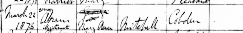 None of the three Sutcliffe children ever married, but George came closer than the other two. He fell in with Mary Ann Mitchell of Shoebroad and in 1871 she had a little boy out of wedlock. He was named Abraham. The two seem to have fallen out by 1873 when Mary Ann finally had her son baptised, with George’s name written in but then scribbled over. Had George gone back on claiming his son as his?