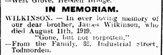 This continued on until 1912 when Sally died, and then past that point, as James and Violetta clearly had a close sibling relationship (and must have gotten on well with Henry too). James died in 1919 and while there was no mention in the papers on his passing, a year later the Sutcliffes posted a loving in memoriam to him.