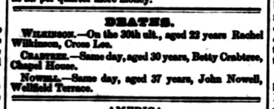 You may have noticed earlier that Thomas had a sister named Rachel, and that her name is in the title of this post. Rachel became a weaver, never married, and in May 1865 died and was buried here. We wish we had more to say about her, but her time here wasn’t one of which any mentions were made. Was the grave at Heptonstall full? Quite possibly, or maybe Isaac was saving a space for himself. Either way, Thomas seems to have been the one who paid for this grave space, so all credit to him. Meanwhile all we have here is a blurry mention of her in the Todmorden Advertiser and Hebden Bridge Newsletter