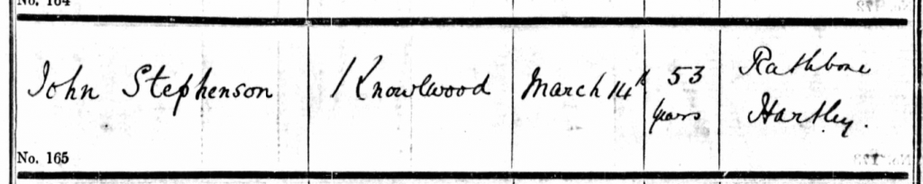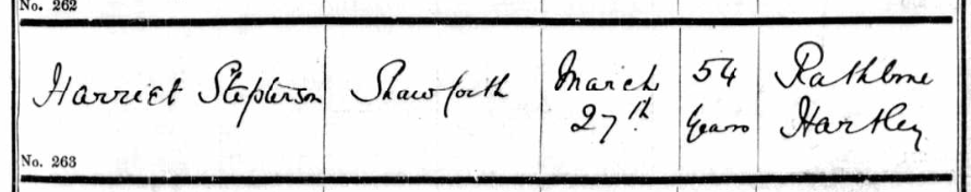 Edmund and Martha had a daughter, Ruth, in 1884, and things were looking a little better, but this wasn’t the end of their losses. Edmund’s father John would die up at Stansfield View, in the workhouse, in 1885. Politely the burial register only mentions his home address at Knowlwood, but the newspaper wasn’t so discreet which is how we know he was up there. Harriet went back to Shawforth to be with her family but died there the following year. Both are buried at Christ Church and with nowhere else to locate them we have to conclude that they’re likely to be in this plot; they were Edmund’s parents after all. Martha’s parents were in rude health and would both live to decently old ages.